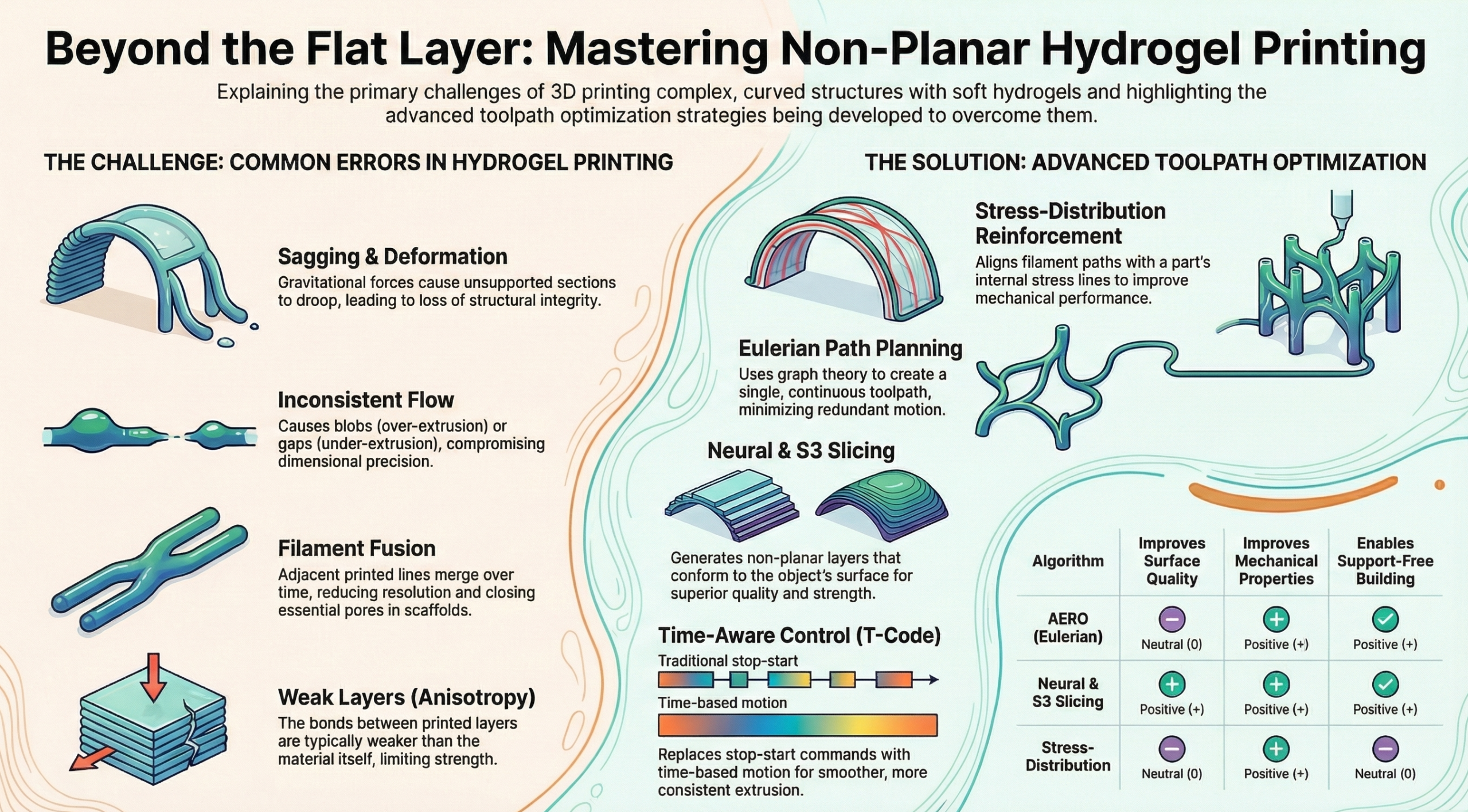 Figure 3. Infographics on non-planar hydrogel printing and its challenges