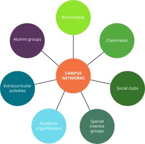 During your college years, you will have many opportunities to make connections with new people. Taking advantage of these opportunities allows you to perfect your skills in initiating and developing new and even lifetime connections. You can establish new friendships with roommates, classmates, social club members, special interest groups, academic organizations, competitive and intramural athletic teams, and many others. All of these groups not only encourage new social relationships but also foster opportunities for developing and improving leadership skills.